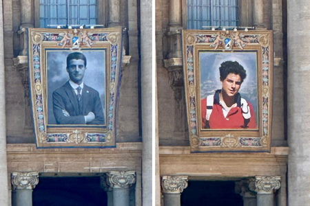 Courtney Mares Portraits of 2 soon-to-be-saints are displayed in Vatican Square ahead of the canonization Sept. 6, 2025. The Register would love to hear from you! Read More