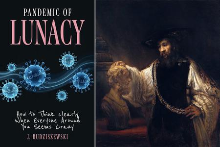 Left: Cover of “Pandemic of Lunacy: How to Think Clearly When Everyone Around You Seems Crazy” by J. Budziszewski. Right: Rembrandt, “Aristotle With a Bust of Homer,” 1653, Metropolitan Museum of Art, New York.