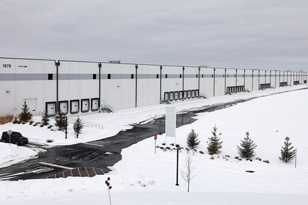 View of a warehouse that may become a detention center in Roxbury, New Jersey, on Feb. 16, 2026. Activists say the Department of Homeland Security is considering converting this industrial warehouse into an ICE detention center, which faces the opposition of the local community.