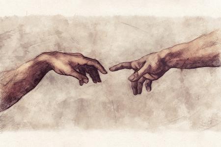 An energetic God-the-Creator thrusts his hand toward a reclining Adam.