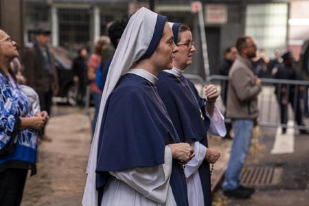 Catholic nuns pray with pro-lifers across from the Planned Parenthood in downtown Manhattan on Nov. 5, 2022, in New York City.