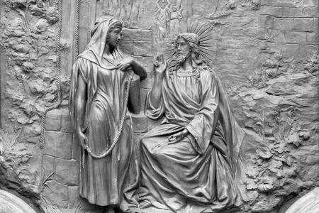 Renata SedmakovaThis bronze relief depicting Jesus talking with the Samaritan woman at the well is from the gate of Basilica Collegiata di San Sebastiano, probably from the 19th century. In the end, the Samaritan woman is amazed at Jesus’ capacity to answer her deepest questions and free her from worldly pains and sorrows. How about … Read moreJesus Gives Us Springs of Living Water